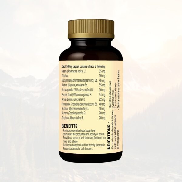 A specially formulated Ayurvedic blend designed to help maintain healthy blood sugar levels and support overall metabolic balance. Enriched with natural ingredients, these capsules assist in regulating glucose levels, supporting heart health, and promoting overall well-being—ideal for daily diabetes care.