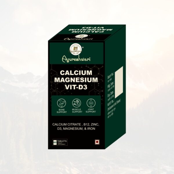 Ayureshwari Calcium Magnesium with Vitamin D3 Tablets – Bone, Muscle & Joint Support (60 Tablets)