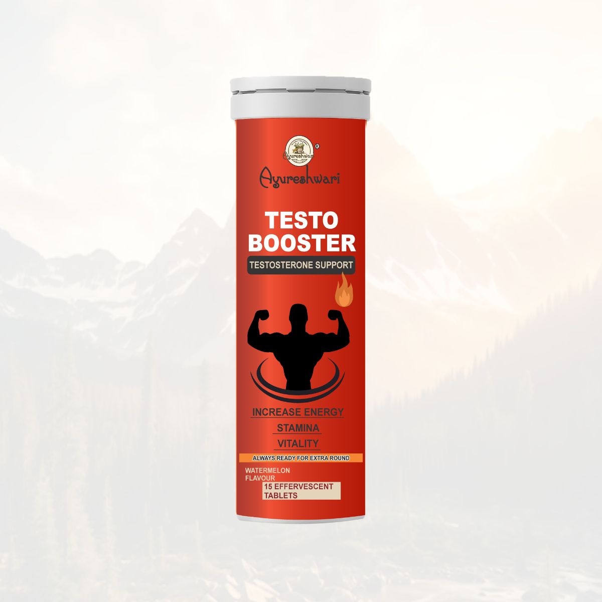 Ayureshwari Testo Booster Effervescent Tablets – Testosterone Support for Energy, Stamina & Vitality (15 Tablets)