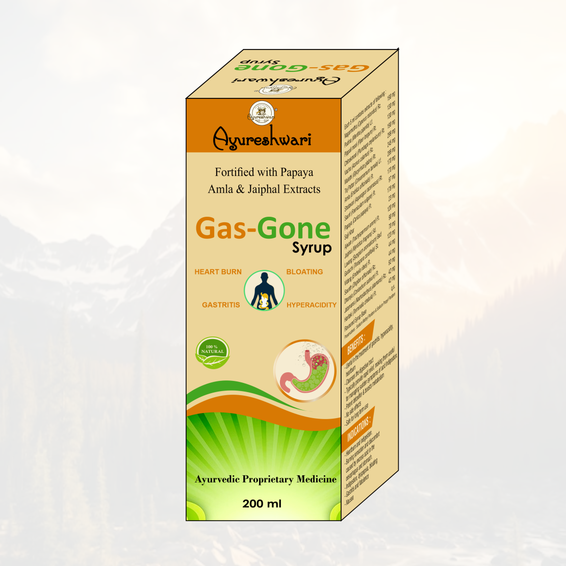 Experience the soothing power of Ayurveda with Gas-Gone Syrup – your natural solution for a calm and healthy stomach.