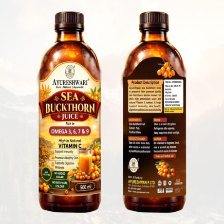 Ayureshwari Sea Buckthorn Juice – Rich in Omega 3, 6, 7 & 9 | Vitamin C Boost | 500 ml